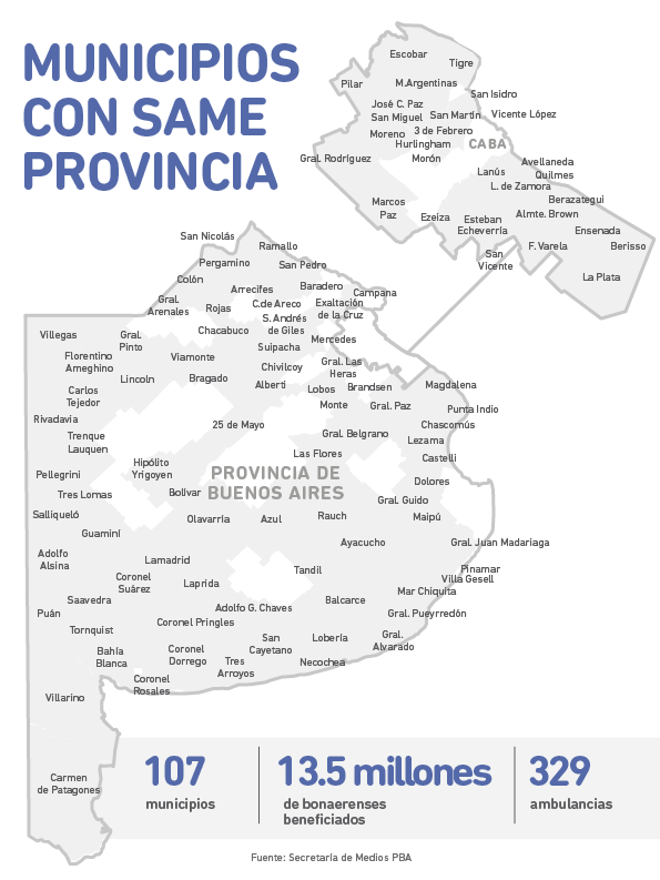 Además del ineludible contenido electoral del mensaje de la Gobernadora, sus palabras dejan tela para cortar. Primero, los datos: según el conteo oficial hay 108 distritos que ya cuentan con el SAME. Esto implica el 80 por ciento del territorio y abarca una población de 13.5 millones de habitantes.