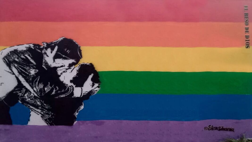 “El mural fue intervenido el 24 de marzo (Día de la Memoria por la Verdad y la Justicia) , con un escrito que decía PUTO, con una cruz celta vinculada a la ultraderecha nacionalista. Luego, con el devenir de los días, fueron y le escribieron “¿Y qué?”. Días después apareció arriba otra pintada que le daba un nuevo vuelco al mensaje con un “todo puto, viva el amor”. Estos diálogos en la pared tienen mucha significancia, en la posibilidad de la movilidad del sentido en el arte popular”, comparte la artista que sueña con llevar su arte a la mismísima Bombonera: “Quiero aprovechar para expresar mi deseo de pintarlo en la bombonera donde fue el beso de D10S, como huella imborrable que dejó el Diego en sus gestos de amor por el fútbol y por la gente, por seguir replicando el stencil como forma de enfrentar el odio y celebrar la diversidad”.