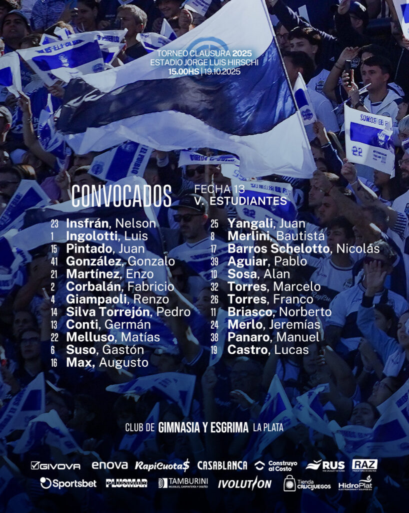 El Clásico Platense paralizará como siempre a toda la ciudad. Este domingo a partir de las 15 horas Estudiantes y Gimnasia se verán las caras nuevamente, buscando una victoria que vale más que tres puntos. Antes, ayer en horas de la noche, confirmaron sus respectivos planteles.