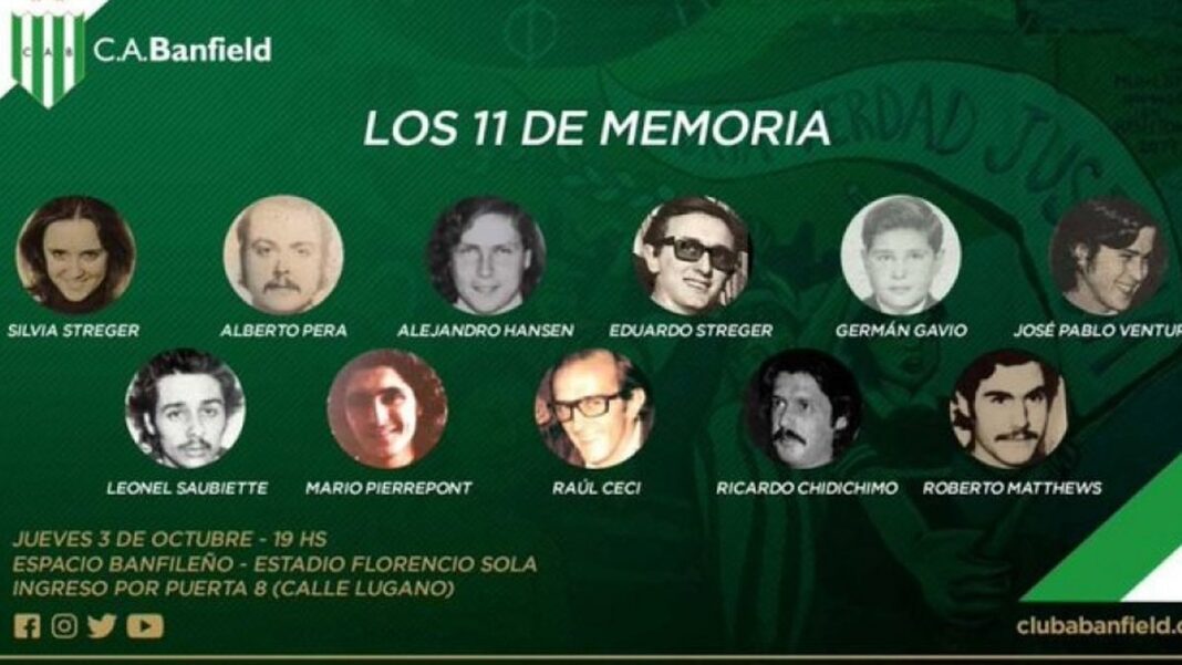 Los “11 de memoria”, como fueron bautizados, fueron restituidos en su condición de socios el pasado 3 de octubre por la única mujer que preside un club afiliado directamente a AFA y fue por ello que AFA mandó el siguiente comunicado: “Me complace saber que Banfield es el primer club que restituye la condición de asociadas a todas aquellas personas que fueron socias de la institución y revisten la condición de detenidas-desaparecidas o víctimas del terrorismo de Estado. Esto significa, en sí mismo, un acto de justicia y como tal es imposible que nuestra Casa no acompañe la iniciativa”.