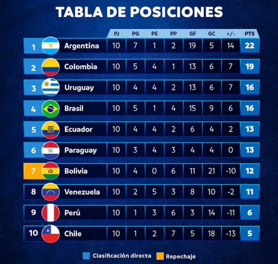 La diferencia con el séptimo puesta es amplia por lo que Argentina podría permitirse algunos tropiezos en el tramo final y la ventaja acumulada le permitiría llegar con tranquilidad al cierre de la competencia. Argentina se perfila como uno de los equipos fuertes para llegar al Mundial 2026. Si logra mantener el ritmo, el sueño de ver a la Selección defendiendo el título en Estados Unidos, México y Canadá estará cada vez más cerca de convertirse en realidad.
