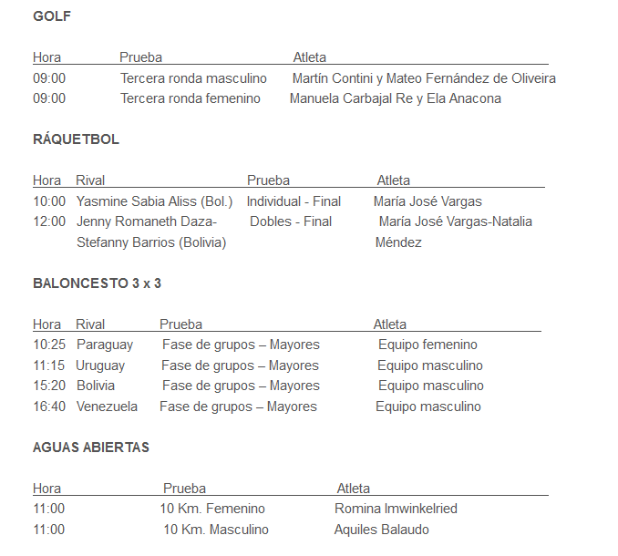 El día de ayer entregó buenas noticias para nuestros representantes, quienes cosecharon 7 medallas, aunque cayeron al cuarto puesto en el Medallero General. Esquí Náutico, Ciclismo Pista, Esgrima, Ráquetbol y Vóleibol serán algunos de los que hoy intentarán revertir eso.