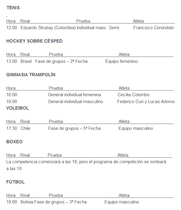 La delegación Argentina volverá a tener actividad hoy en Cochabamba, en la que será la séptima jornada de los Juegos Sudamericanos. En el día de hoy tendrán competencia nada menos que 13 disciplinas, varias de ellas con la posibilidad de llevarse una medalla.