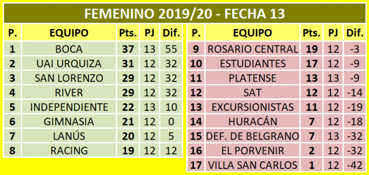 En la jornada de ayer finalizó la fecha N°13 del torneo de Primera División de fútbol femenino, con una victoria fundamental de Independiente en su visita a Huracán. Ahora faltan solo cuatro jornadas para que se defina todo.