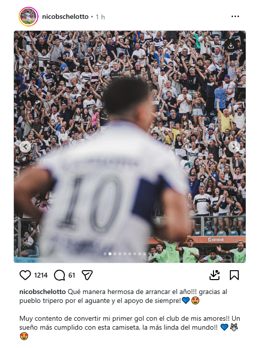 Más tarde, en redes sociales, Nico se explayó. Sí, este domingo, el Heredero posteó: “¡¡¡Qué manera hermosa de arrancar el año!!! Gracias al pueblo tripero por el aguante y el apoyo de siempre. ¡Muy contento de convertir mi primer gol con el club de mis amores!! Un sueño más cumplido con esta camiseta, la más linda del mundo”.
