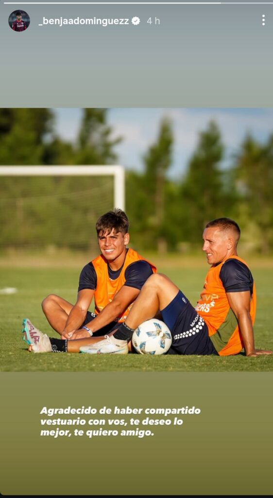Junto a una foto de ambos en Estancia Chica, Benja expresó:“Agradecido de haber compartido vestuario con vos, te deseo lo mejor, te quiero amigo”. Con ese mensaje para el ex Eibar, Domínguez despidió quien ahora buscará nuevos rumbos, ya lejos de Gimnasia.