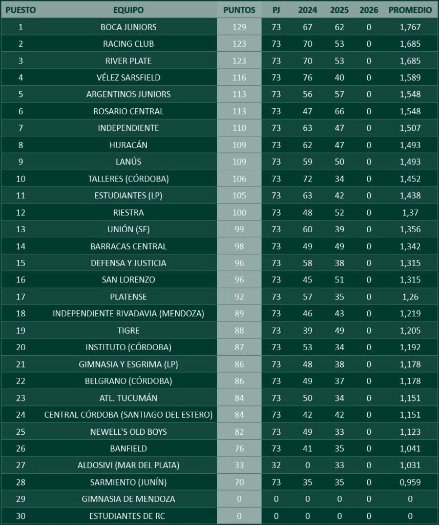 La temporada 2025 de Primera División finalizó ya, más allá de que quede por disputarse el Trofeo de Campeones entre Estudiantes y Platense. Con todo ya definido en cuanto a cosecha de puntos, los clubes ya saben cómo iniciarán el 2026 y quiénes comenzarán comprometidos en la lucha por el descenso.