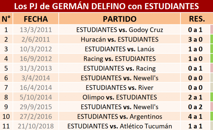 Con Delfino el Lobo tiene mejores números: ganó en seis oportunidades, mientras que empató tres y cayó solamente en dos. Su única vez lejos de La Plata fue en 2016, cuando lo dirigió en Bahía Blanca ante Olimpo y finalizaron 0 a 0.
