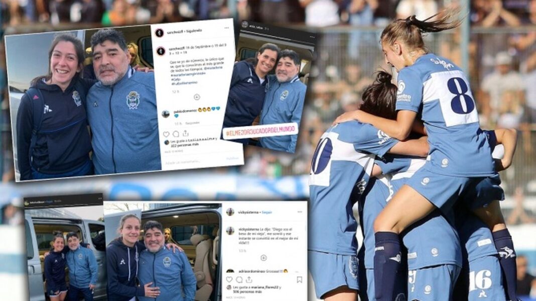 Diego Armando Maradona, entrenador del primer equipo masculino visitó al plantel de las Triperas en la antesala de ese debut y compartió un rato junto a ellas luego de la práctica, fotografiándose con cada una de ellas.