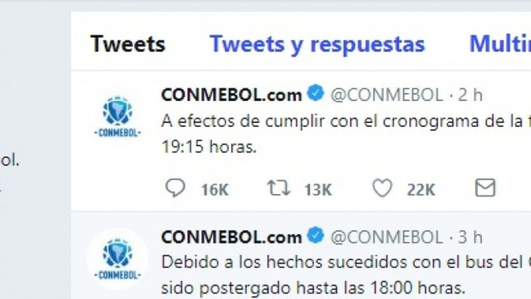 Un rato más tarde, y posterior a la reunión que mantuvieron Alejandro Domínguez, presidente de CONMEBOL, Daniel Angelici, presidente de Boca, y Rodolfo D´Onofrio, presidente de River, las autoridades de la casa sudamericana de fútbol confirmaron que el partido no se suspendía y reprogramaron el encuentro para las 19hs.