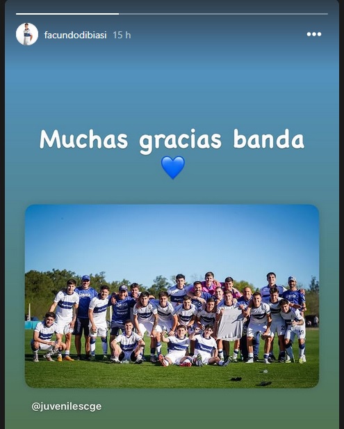 Esa imagen fue compartida también por varios de sus compañeros e incluso por el propio Facundo Di Biasi, quien la publicó en sus historias y agradeció el gesto: “Muchas gracias banda”, escribió junto a la imagen y un corazón azul.