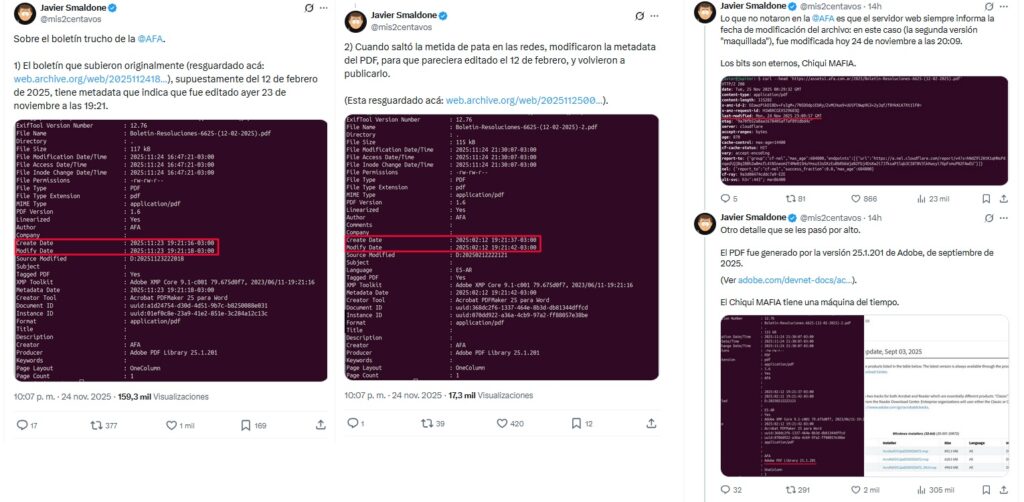 Horas más tarde en calle Viamonte “entró la bala”: se vieron forzados a emitir un comunicado, que lejos de esclarecer la situación, generó mayores sospechas. Además de tratarse de un texto mal escrito, con errores groseros en las fechas mencionadas y en el cual no se brinda ninguna explicación de por qué un documento de febrero tiene fecha de creación de noviembre, hubo otro inconveniente. Allí se citó al boletín N°6.661 como argumento, pero oh casualidad, el mismo tampoco estaba en la página de AFA.