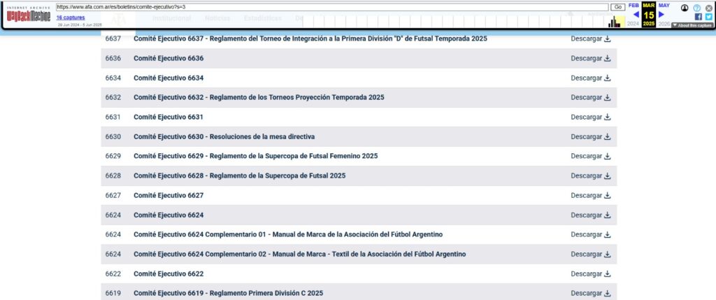 Dicho protocolo fue “publicado” en el boletín N°6.625 del Comité Ejecutivo de AFA, con fecha del 14 de febrero de 2025. ¿Por qué las comillas? Porque rápidamente se corroboró que ese boletín no figuraba en la página de la Asociación en los días previos, sino que recién apareció luego de la victoria del Pincha.