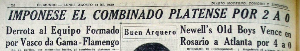 Aquel 13 de agosto tuvo la particularidad de que jugaron los dos combinados de Vasco y Flamengo. Uno en el Viejo Gasómetro y el otro en el viejo estadio de madera del Pincha. Las crónicas de los medios nacionales atendieron mayoritariamente al primero de esos duelos.