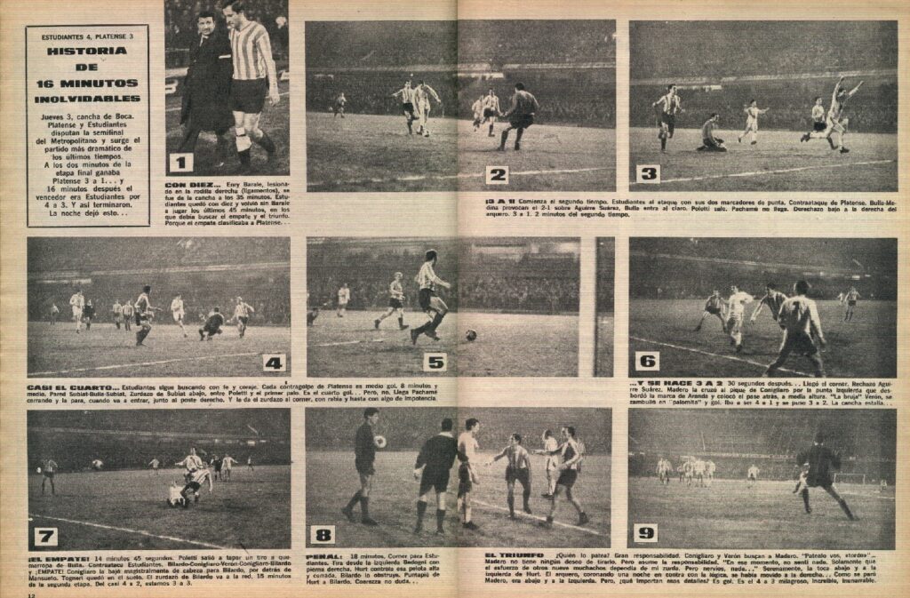 El fútbol está lleno de mitos y uno de ellas tiene que ver con ese partido. Se dice que, en el entretiempo y camino al túnel, Labruna juntó a sus muchachos y les dijo: “Ahora me juegan livianito. Mañana hacemos baños turcos, nos relajamos y el sábado somos campeones”. De arranque en el ST, Bulla conectó al gol un centro desde la derecha y sentenció un 3-1 que parecía terminar de sepultar a Estudiantes.