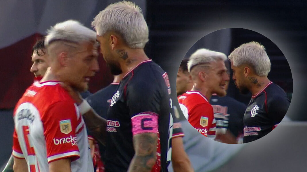 El intercambio fue muy intenso. Duró unos largos segundos hasta que el saque de arco de Marcos Ledesma reinició el juego y forzó a que ambos recuperaran el foco en el encuentro.