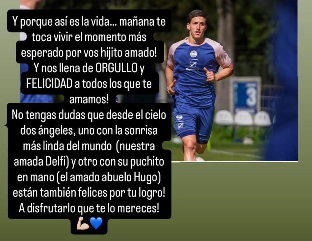 “No tengas dudas de que desde el cielo dos ángeles, uno con la sonrisa más linda del mundo (nuestra amada Delfi) y otro con su puchito en la mano (el amado abuelo Hugo) están también felices por tu logro. ¡A disfrutarlo que te lo merecés!”, cerró su historia en IG.