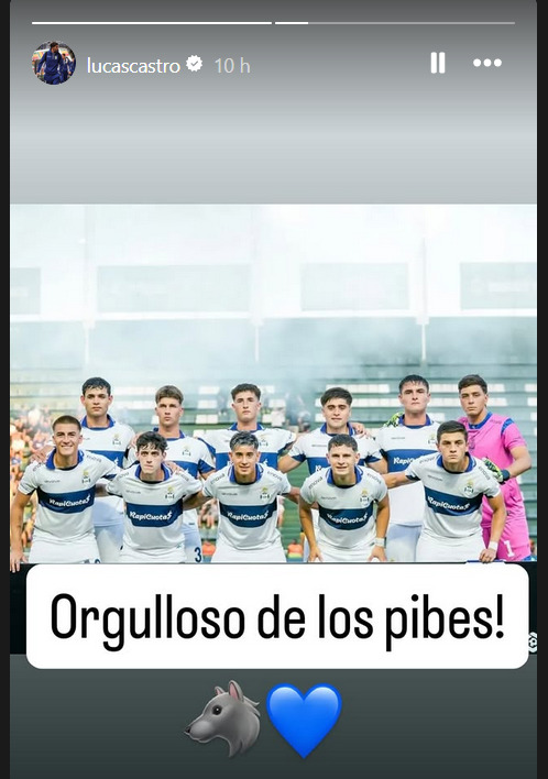 Frente a este escenario y con la desazón lógica por la imposibilidad del festejo, Lucas Castro le mostró su apoyo a los pibes del Lobo. A través de sus redes sociales, el referente del primer equipo, quien junto a los suyos aguarda por el trascendental encuentro del lunes frente a Estudiantes, compartió una foto del 11 junto a la cual manifestó: “Orgulloso de ustedes”.