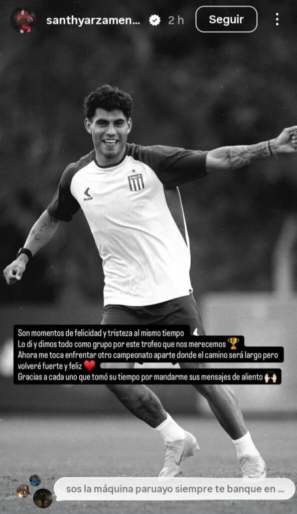 Ahora, el defensor tendrá que afrontar entre seis y ocho meses de recuperación, por lo que decidió expresarse en redes sociales ante tanta muestra de apoyo por parte de los hinchas. “Son momentos de felicidad y tristeza al mismo tiempo. Lo di y dimos todo como grupo por este trofeo que nos merecemos”, comenzó el oriundo de Misiones.