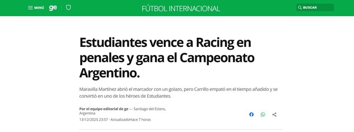Fue tan épico. Fue tan inolvidable. Fue tan valiente. Fue tan increíble, en algún punto, que la consagración de Estudiantes no será una más. Y no lo fue. Al menos, en el rebote mediático, todos los medios de Argentina le dieron una gran trascendencia a la forma en la que el Pincha construyó su estrella 18…