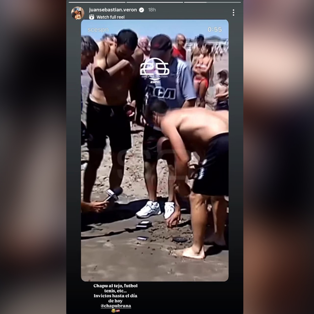 Luego de que ESPN compartiera ese recuerdo quien tomó la posta y lo compartió en sus redes sociales fue uno de los protagonistas del mismo: el presidente de Estudiantes. La Bruja lo subió en sus historias con un mensaje gracioso, etiquetando a Rodrigo Braña. “Chapu al tejo, fútbol tenis, etc… Invictos hasta el día de hoy”, escribió con un emoji de risas.