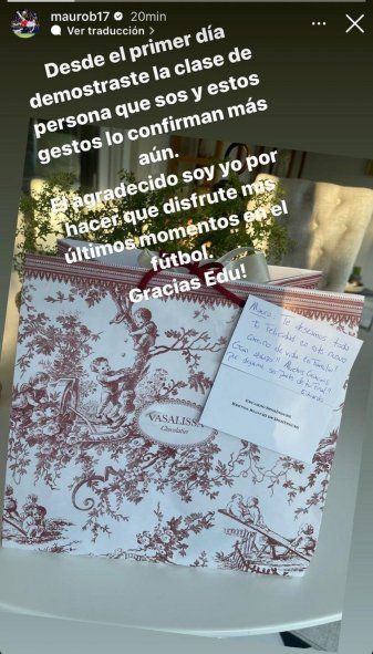 Mauro Boselli, agradecido por el regalo, respondió cariñosamente a través de una historia de Instagram: “Desde el primer día demostraste la clase de persona que sos y estos gestos lo confirman más aún. En agradecido soy yo por hacer que disfrute mis últimos momentos en el fútbol. Gracias Edu!“.