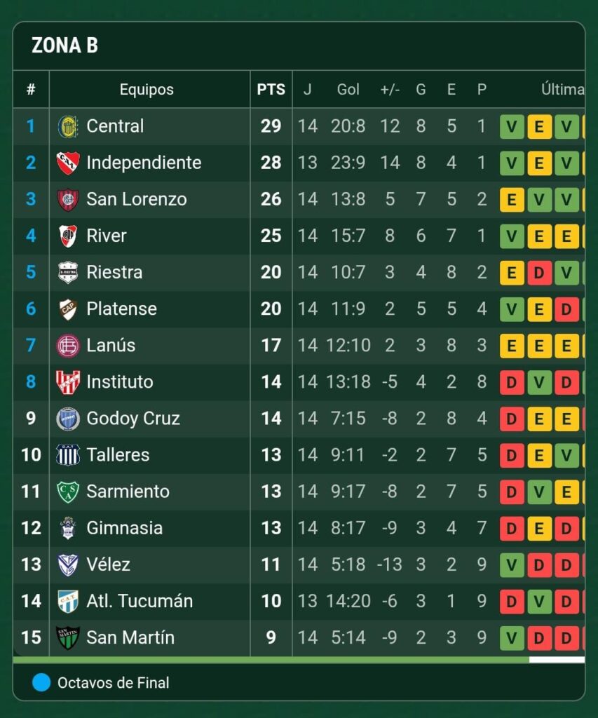 El Lobo tiene 13 puntos, uno menos que Instituto, el último clasificado por diferencia de gol, y Godoy Cruz. Tienen la misma cantidad de puntos que Gimnasia, Talleres, Sarmiento y los puede alcanzar Atlético Tucumán, que postergó su partido frente a Independiente por las condiciones climáticas.