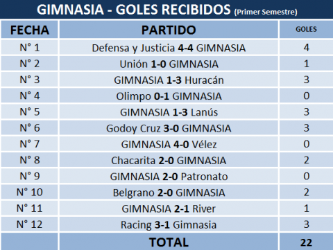 Gimnasia debía atender a ciertas cuestiones que no lo tenían cómodo en ese primer semestre de campeonato de Superliga. De intentar ser un equipo ofensivo y dinámico se encontró, en los números finales, siendo el más goleado de los 28 equipos del torneo.
