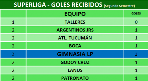 Con un gol recibido el Lobo se encuentra en el segundo grupo entre los equipos que menos goles recibieron en este segundo semestre igualando a Boca y sólo por debajo de Talleres de Córdoba, único equipo con la valla invicta.