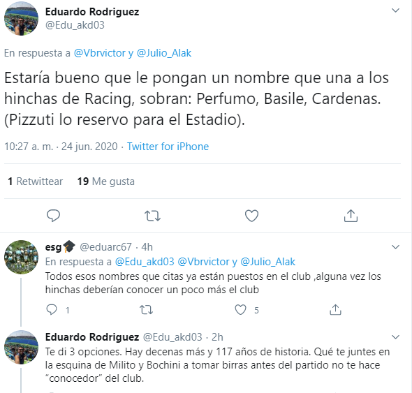 La elección del nombre del predio, que homenajea al ex presidente, fue explicada en detalle por un reconocido hincha académico: El Padre Juan Gabriel Arias. El hombre que hace 7 años trabaja como misionero en Mozambique donde pintó una iglesia con los colores de Racing y milita, también, la causa académica.