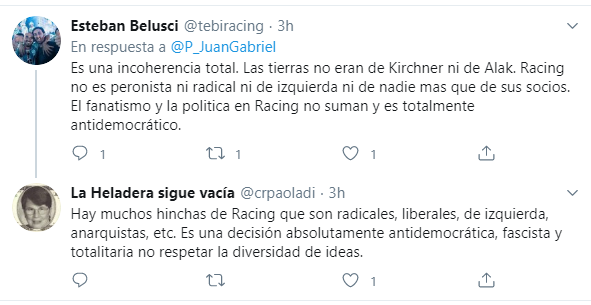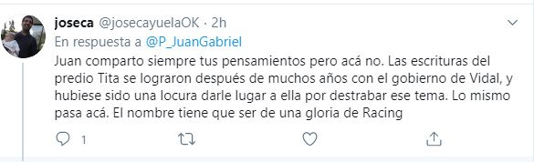 “No hay que meter intencionalidad política en todo. El nombre es un agradecimiento a los que lo hicieron posible. Igual que el Cilindro. Es bueno ser agradecidos. No hay que mezclar la política en esto”, señalo el cura que de todos modos fue cruzado por varios hinchas que pretendían que el nuevo espacio lleve el nombre de glorias deportivas del club.