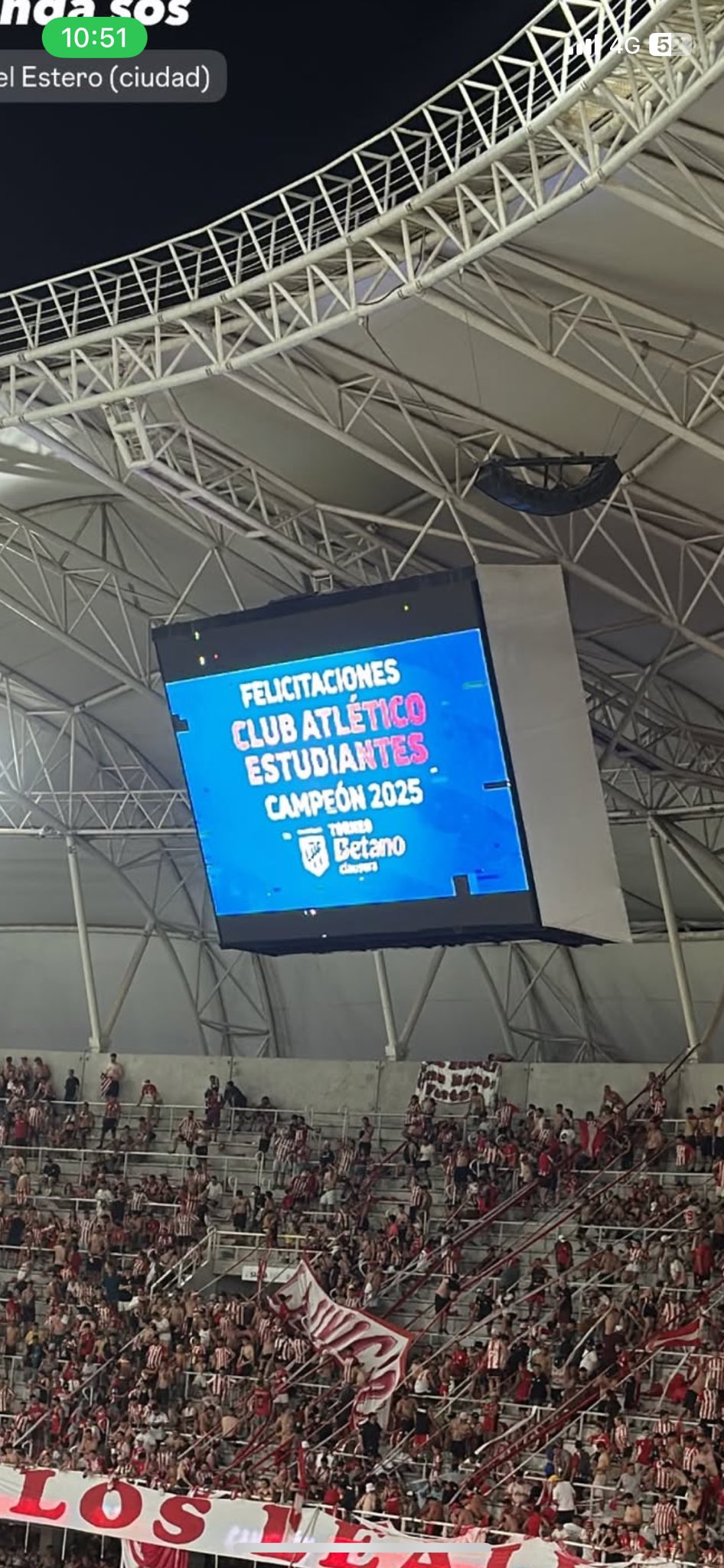La leyenda decía “Felicitaciones Club Atlético Estudiantes, Campeón del Torneo Clausura 2025”, dejando en claro la falta de conocimiento de la Liga o de los administradores del estadio, ya que Estudiantes no tiene en su denominación la palabra atlético.