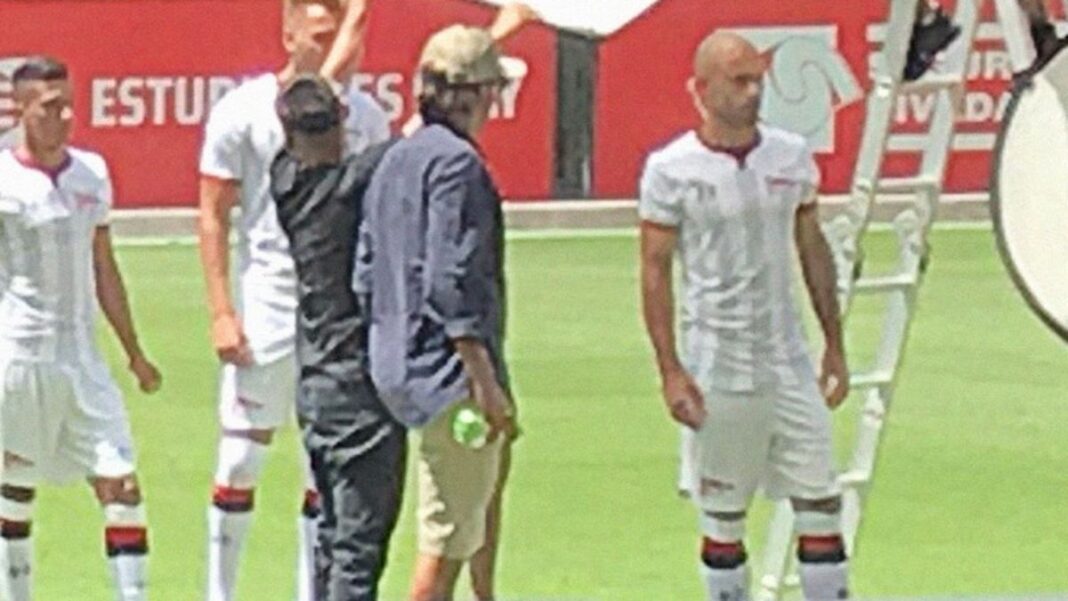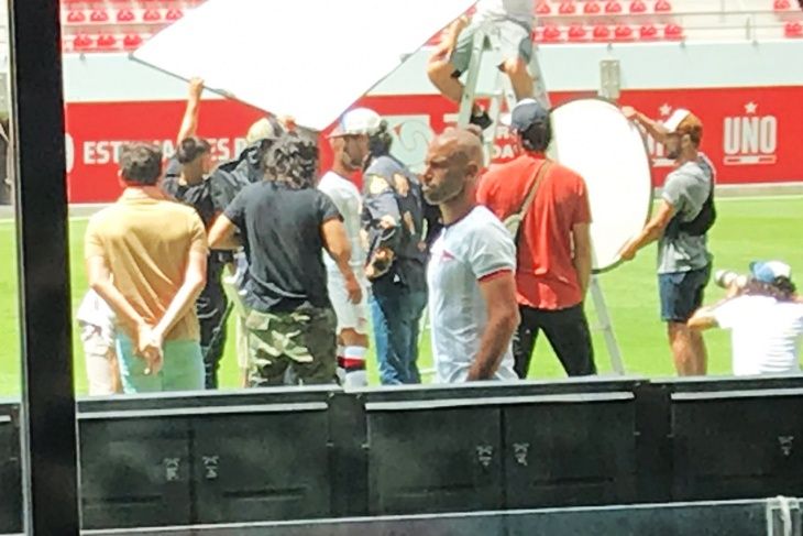 Sucede que ayer un simpatizante Albirrojo que transitaba ocasionalmente por el frente del Estadio descubrió que estaban sacando fotos en el campo de juego para la presentación de la camiseta, e inmortalizó el momento a través del portón del bar temático.