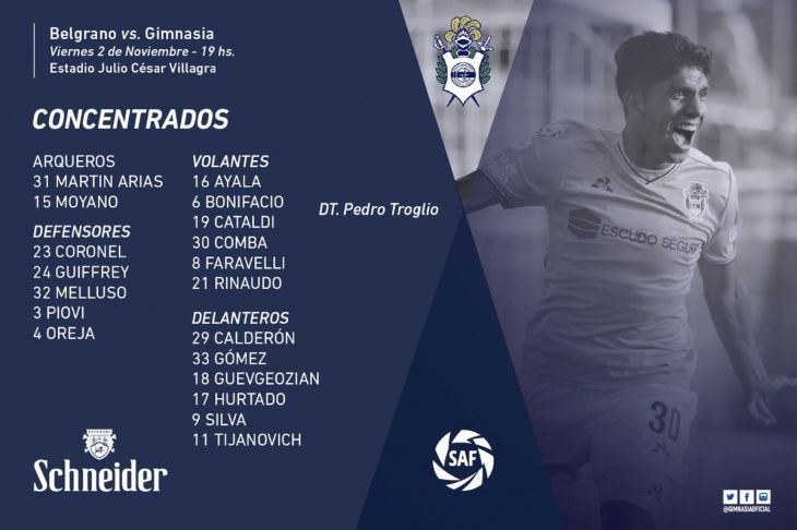 Luego del entrenamiento matutino y en la previa del viaje de mañana, Pedro Troglio informó a lista de 19 protagonistas para ir a disputar una parada brava ante Belgrano en Córdoba el próximo viernes.