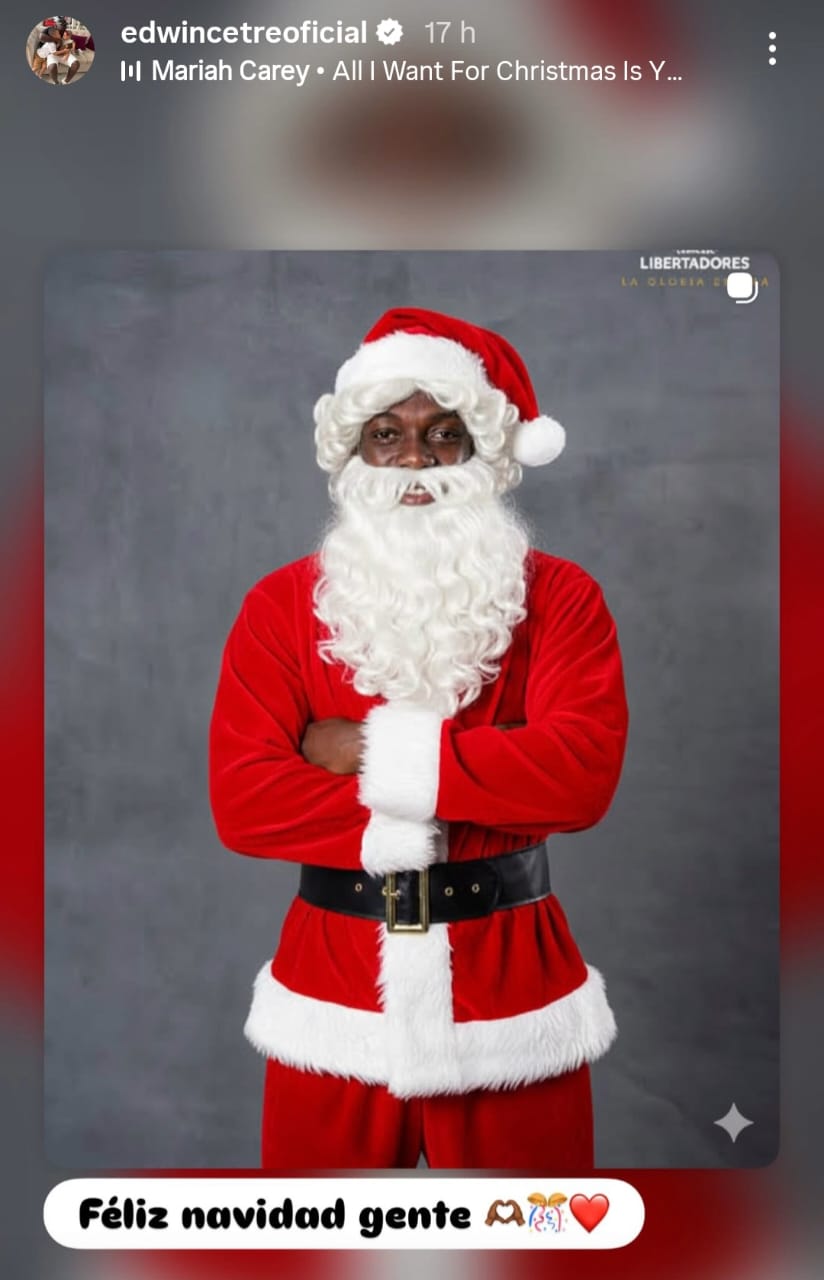 El que la rompió otra vez fue el colombiano Edwuin Cetré, quien subió en su IG una historia vestido de Papá Noel, con un mensaje bien argento: “Feliz Navidad, gente”.