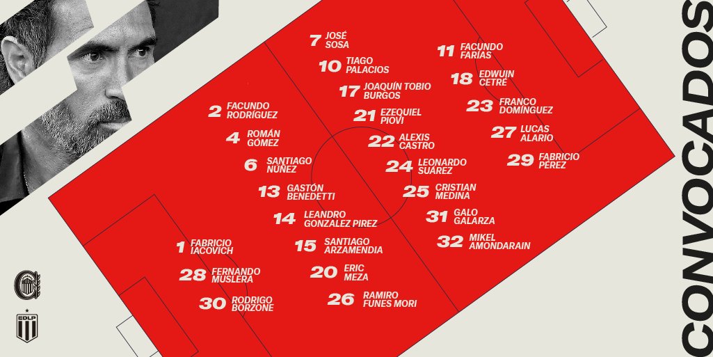 Central: Jorge Broun; Enzo Giménez, Facundo Mallo o Ignacio Ovando, Juan Cruz Komar, Agustín Sandez; Federico Navarro, Tomás O’Connor; Gaspar Duarte, Ángel Di María, Jaminton Campaz; y Alejo Véliz. DT: Ariel Holan.