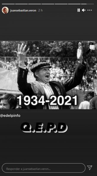 Como había ocurrido cuando se conoció la noticia de la internación de Timoteo en una clínica privada debido al cuadro de neumonía y posterior Coronavirus que presentaba, el ídolo de Estudiantes volvió a manifestarse al respecto: en aquel entonces deseando fuerzas, y ahora con su pésame.