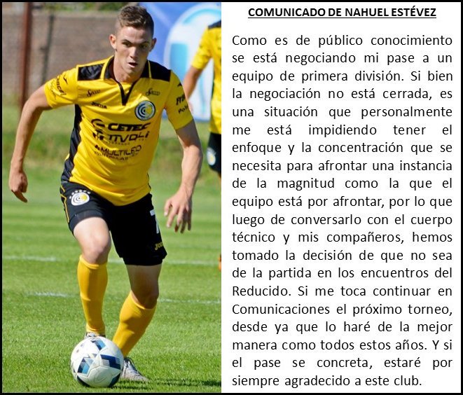 En ese momento Nahuel Estévez informó que había hablado con el cuerpo técnico y con sus compañeros, admitiendo que tenía la cabeza puesta en su posible desembarco en Estudiantes, que en ese momento se encontraba negociando para comprar su ficha. Y por eso, iba a ausentarse de los partidos del reducido.