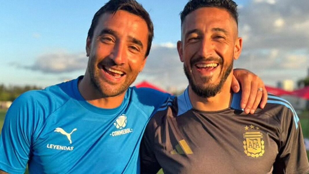 “¡Qué lindo encontrarnos Juancito!”, escribió quien lleva 18 goles en 2024 en el equipo +35 del Pincha al compartir una de las dos fotos que subieron juntos, para luego subir la otra con una cargada de por medio: “Te devuelvo la foto, pero vos siempre enojado jaja”.