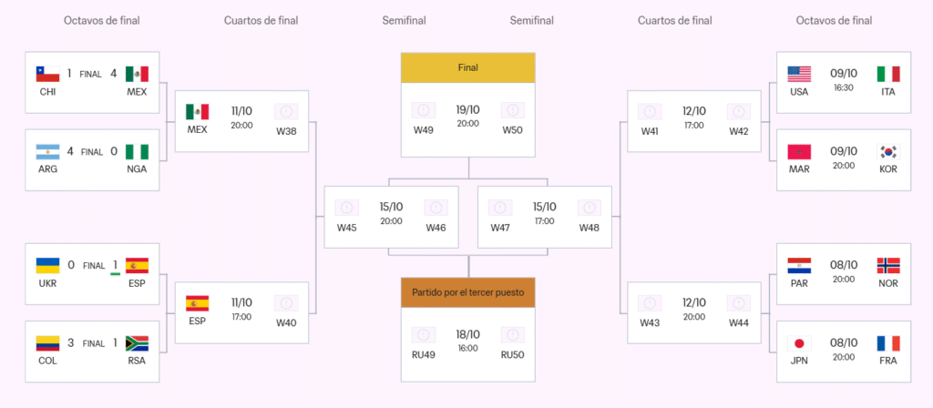 Este miércoles por la noche, por el otro lado del cuadro, se enfrentarán Paraguay-Noruega y Japón-Francia, mientras que este jueves cerrarán la fase de octavos Estados Unidos-Italia y Marruecos-Corea del Sur. La Selección Sub 20 que conduce Diego Placente volverá a presentarse este sábado 11 de octubre a las 20.00hs por los cuartos de final del Mundial, donde se medirá ante el seleccionado mexicano por un lugar entre los cuatro mejores de la Copa.