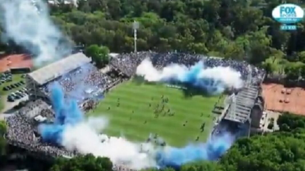 Luego le tocó el turno a los planteles, y allí aparecieron las bengalas que tiñeron el estadio de azul y blanco. Los minutos previos fueron a puro cánticos, con Maradona como abanderado.