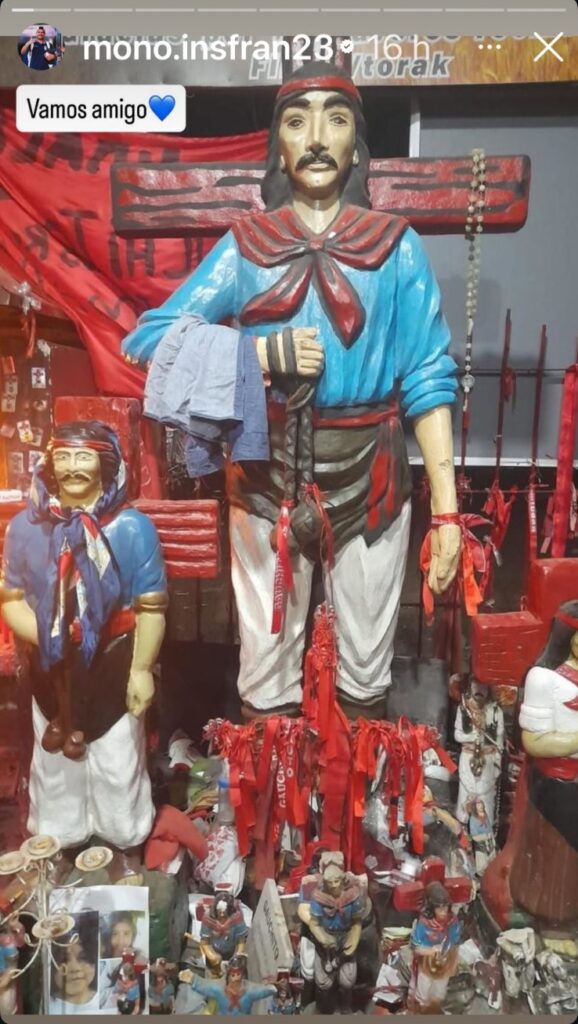 Y esta vez entra entre los pedidos uno muy particular que hizo Nelson Insfrán en la previa del partido ante River. Es que el arquero, como todo buen correntino, es devoto del Gauchito Gil, una figura religiosa muy popular en la Mesopotamia en general y en el fútbol en particular.