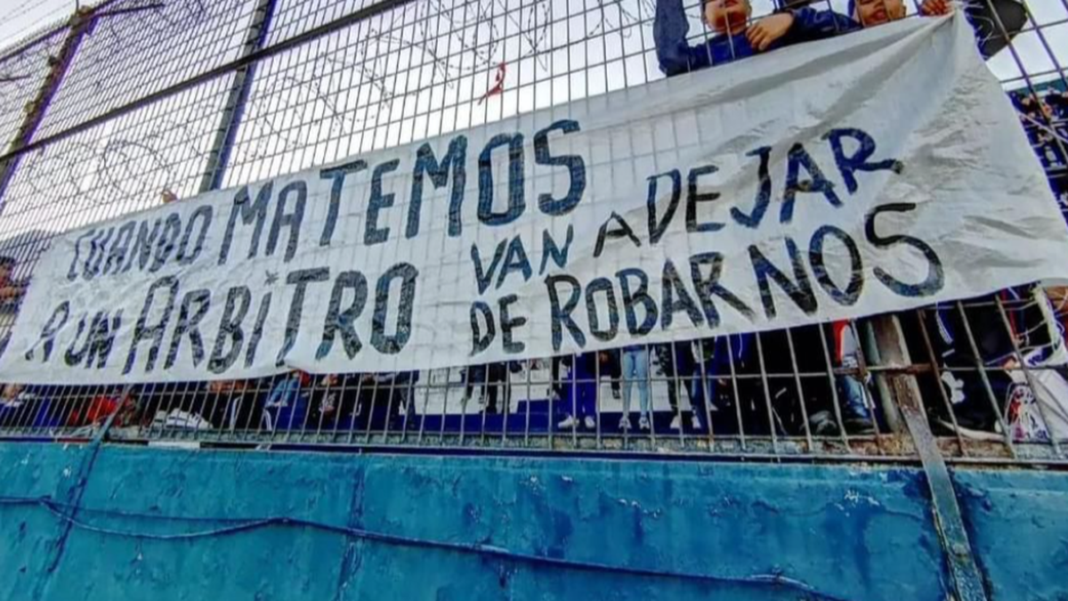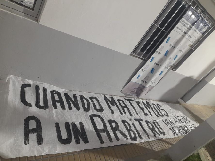 Según explicaron desde la Agencia “iniciado el partido de los conjuntos masculinos de ambas entidades deportivas, los encargados del operativo de seguridad visualizaron una bandera detrás del arco de la tribuna Indio Gómez con la leyenda “Cuando matemos a un árbitro van a dejar de robarnos”, por este motivo se procedió al secuestro de la misma y se dio la correspondiente intervención a la justicia“