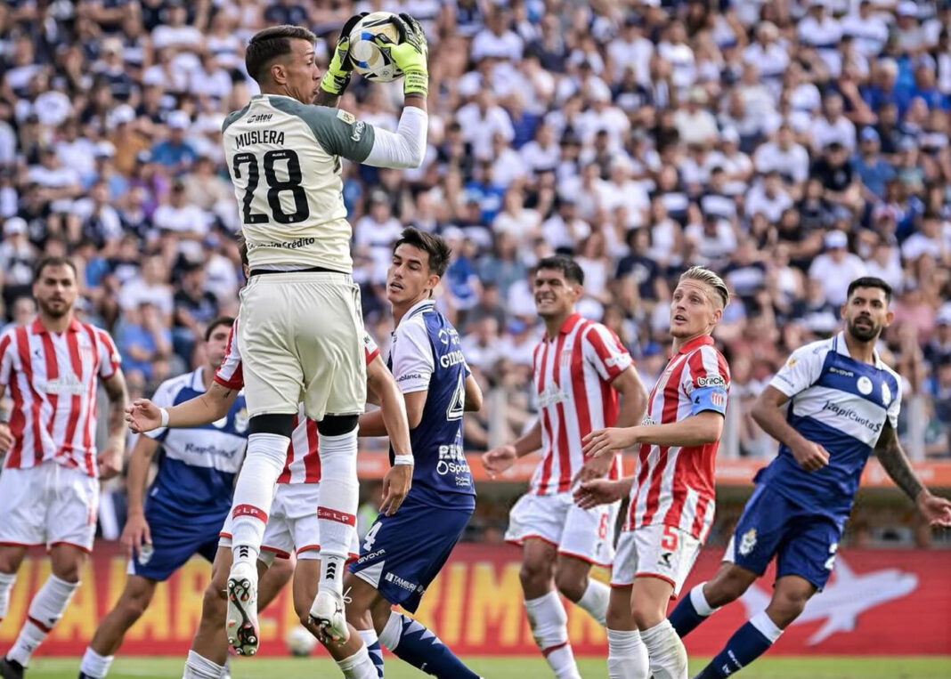 Sobre los 43 minutos de la mitad inicial Manuel Panaro remató al arco desde la derecha del ataque tripero y la pelota se desvío en su marcador, Santiago Arzamendia, elevándose en el aire pero bajando rápidamente. Parecía que se le metía, pero Muslera con una gran reacción logró rechazar a mano cambiada.