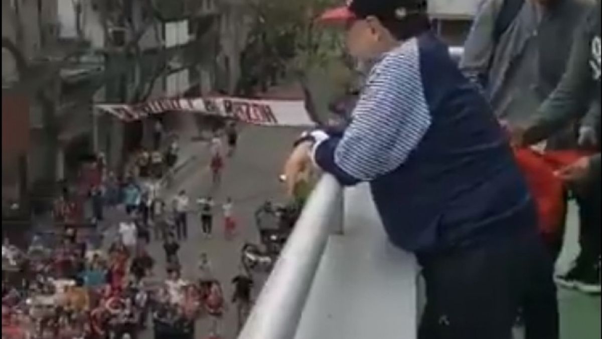 El 10 se ganó el cariño en los cinco partidos oficiales que jugó en el el club en 1993 y esta tarde cuando fue recibido por una multitud. Diego que vestía la indumentaria de Gimnasia salió a saludarlos y hasta se animó a ponerse una visera de la Lepra.