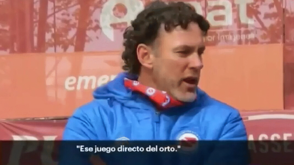 Ante esa jugada, Gabriel Milito se dio vuelta y mirando a sus colaboradores en el banco de suplentes, tiró: “ese juego directo del orto”. El técnico se molestó y la cámara lo captó.