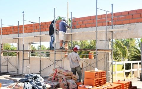 Las tareas se iniciaron con el obrador, y luego con la llegada de los materiales de construcción, se pusieron en marcha los trabajos en el acceso a lo que será el nuevo comedor y en la ampliación de la sala de estar donde los futbolistas estudian y se recrean con juegos de mesa.