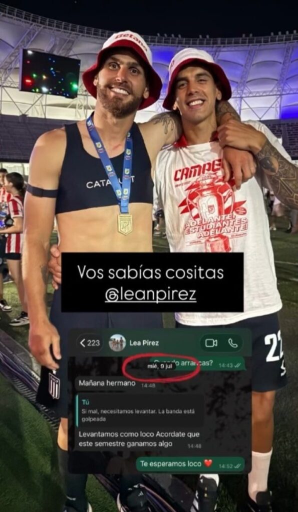 El ex jugador de Tigre, equipo en el que compartieron vestuario, publicó un chat del 9 de julio en el que González Pirez anunciaba que serían campeones. Ante la consulta de Castro sobre cuándo comenzaría a entrenar, el Cabezón respondió “mañana”, seguido de una especie de visión:“Acordate que este semestre ganamos algo”. La imagen, se viralizó rápidamente y fue una de las historias de la consagración Pincharrta en Santiago.