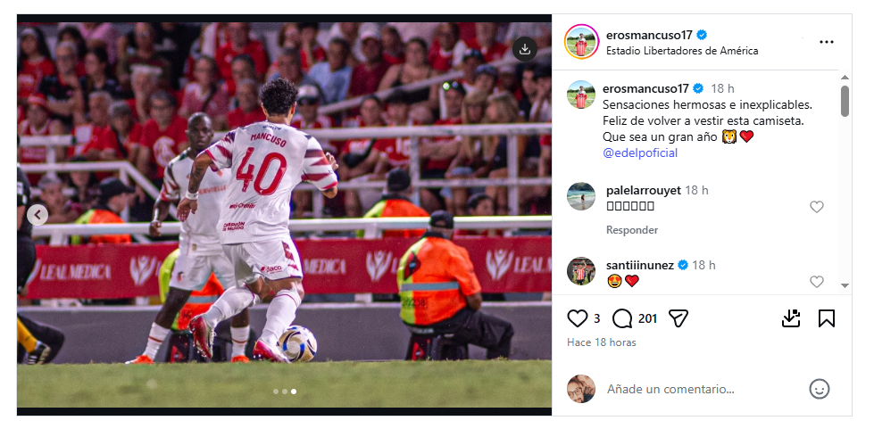 El regreso de Eros Mancuso a Estudiantes empezó a tomar forma dentro de la cancha y también fuera de ella. Tras su reestreno ante Independiente (1-1), el lateral derecho dejó un mensaje sentido en sus redes sociales que sintetiza el momento personal y profesional que atraviesa.