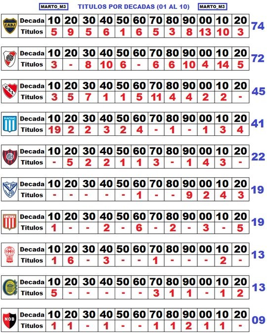 En lo que va de la década actual, Estudiantes es el máximo ganador del fútbol argentino junto a River con cinco conquistas cada uno. De hecho, el Pincha logró igualar su mejor marca histórica, que fue con Osvaldo Zubeldía al frente del equipo en la década del ’60. Aunque el Zorro logró 6 títulos, el último fue ya en la década del ’70.